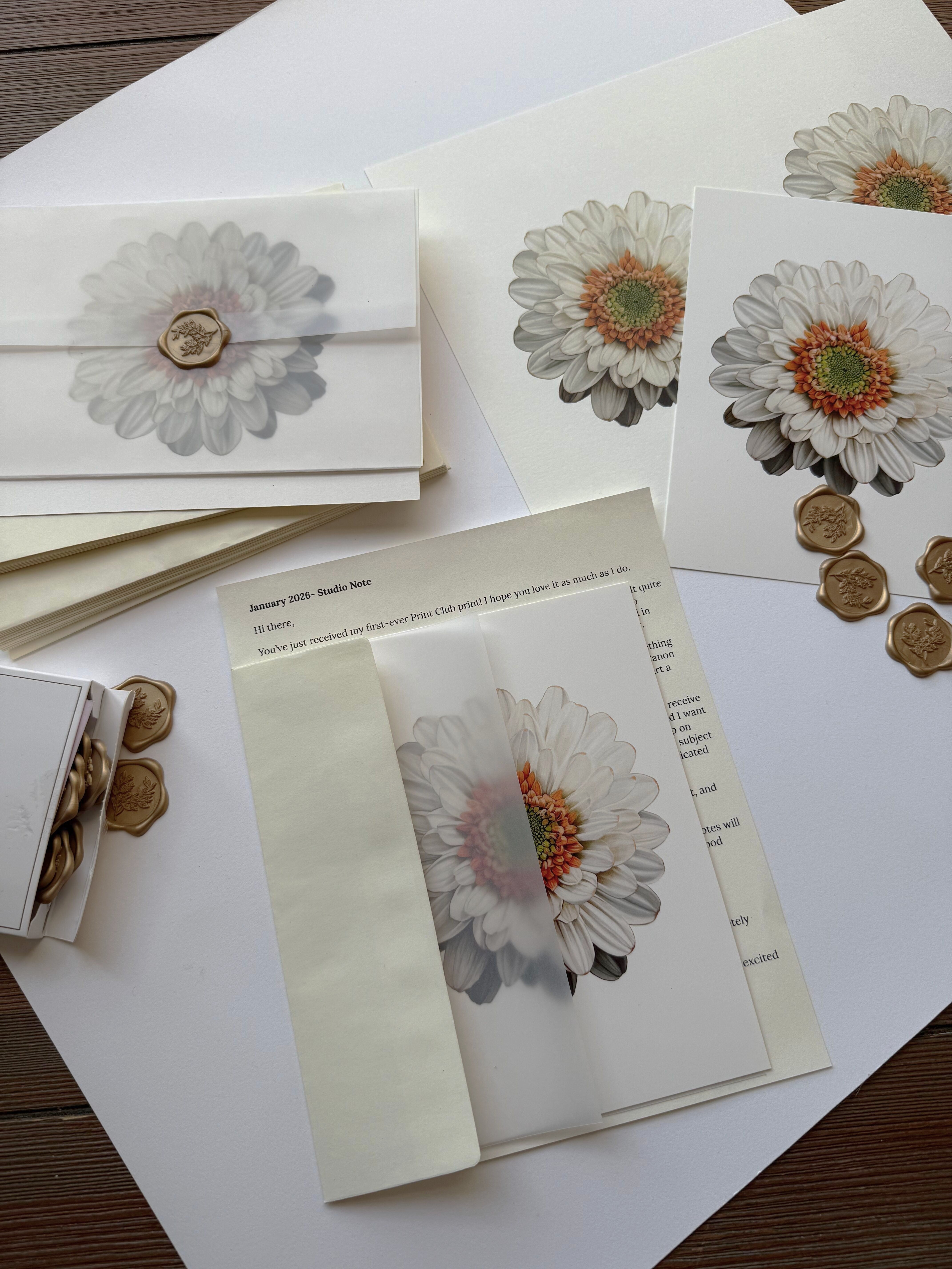 After years of drawing botanicals, I’ve gathered a studio full of artwork that brings me joy every single day. I’ve long wanted a meaningful way to share that inspiration with others, and this monthly print club is my way of doing just that. Each print is a small invitation to slow down, notice the details, and bring a bit of natural beauty into your space.